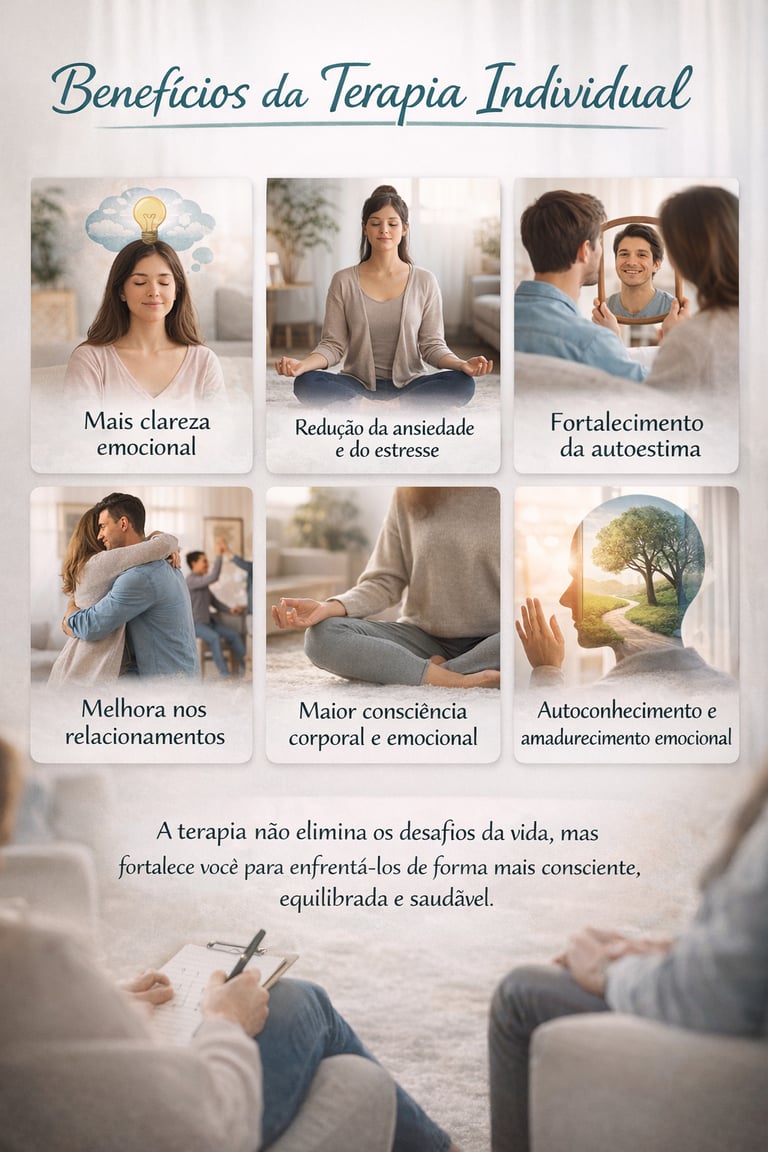 A terapia individual é um processo profundo de auto conhecimento e cuidado emocional.